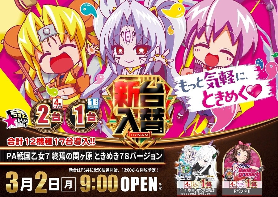 PA戦国乙女7 終焉の関ケ原 ときめき78バージョン 2台 ※こちらの機種は1パチンコ(100円89玉)にも1台導入します。