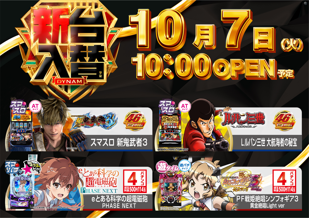 10月7日(火) 新台入替 (予定)