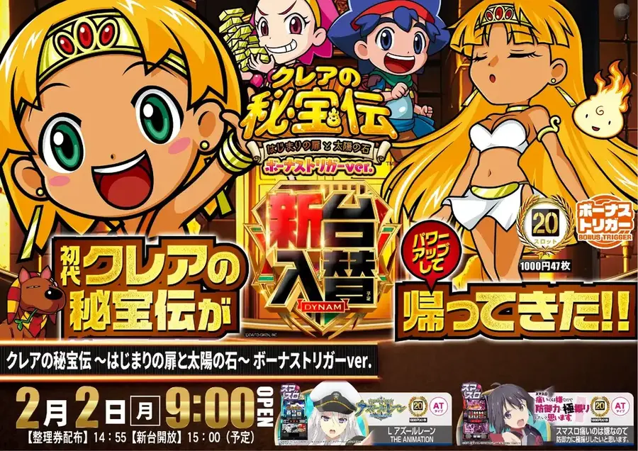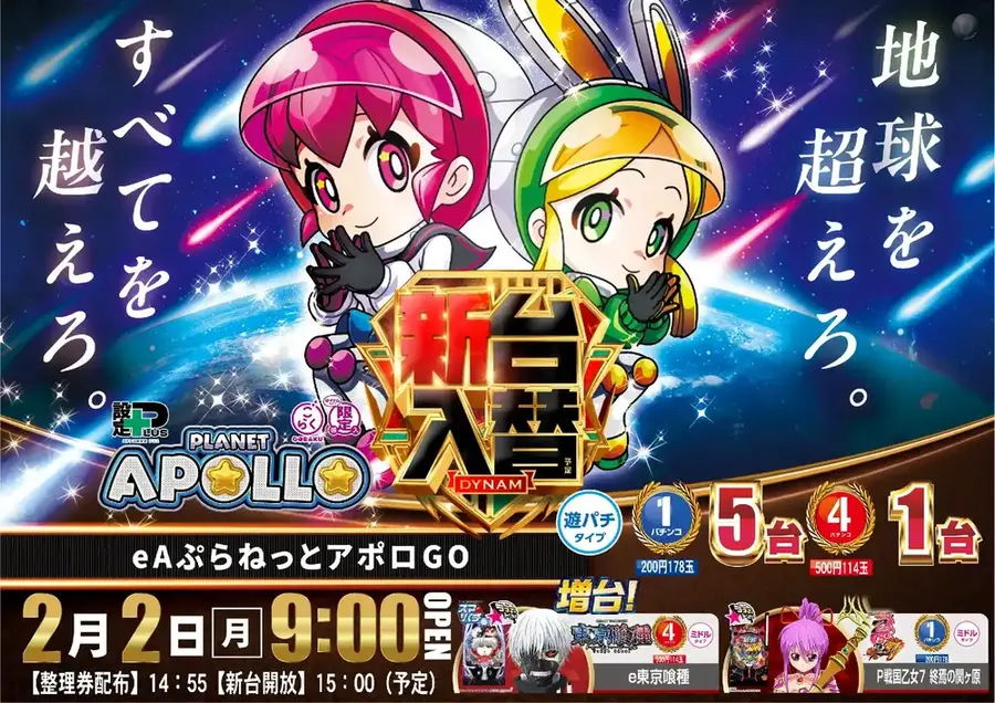 14:55 新台整理券配布(予定) 15:00 新台開放(予定)