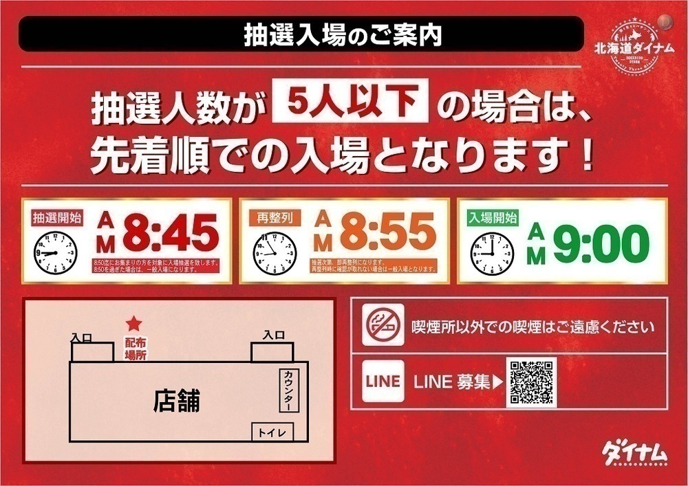 ■9時開店の場合 ⇒  抽選時間   8:45(予定)