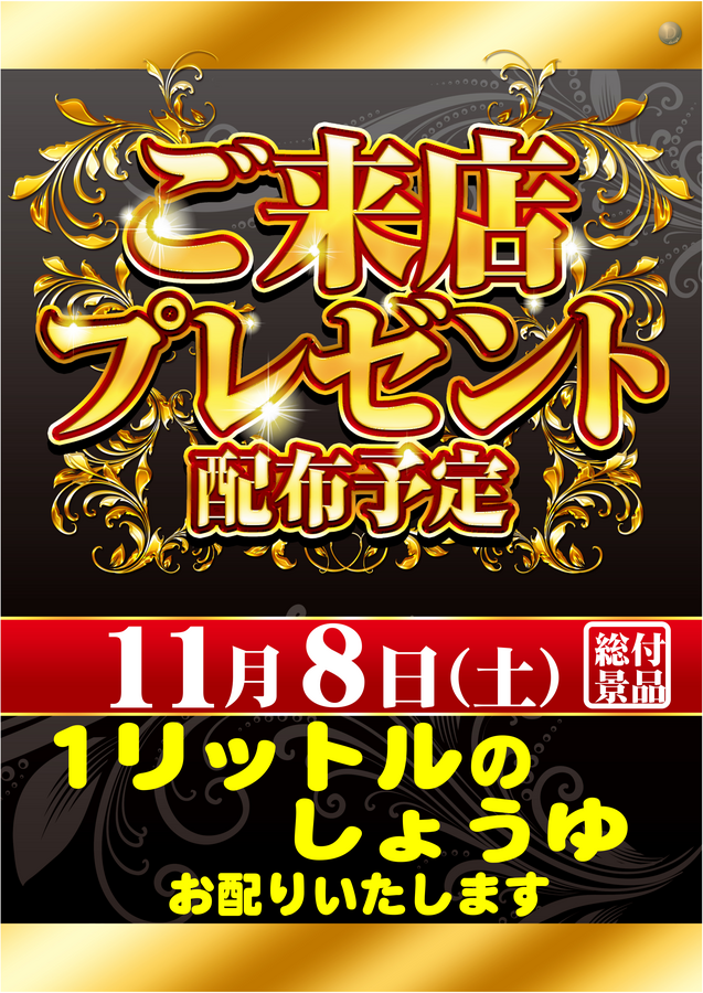 11月8日(土)は「ご来店プレゼント」配布予定となっております。
