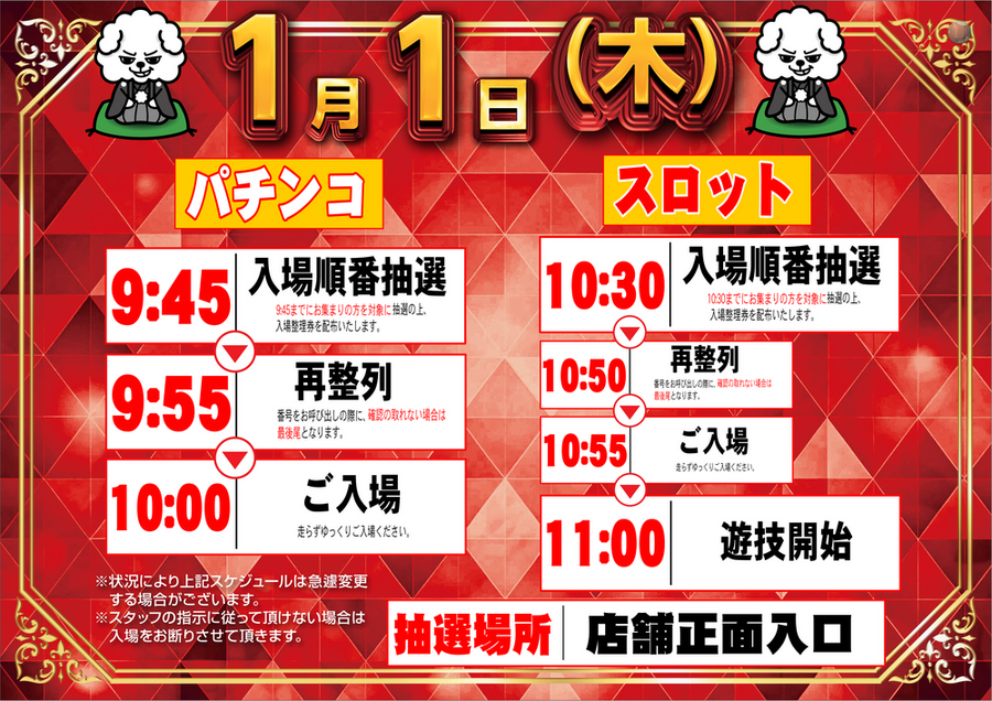 3.1月1日は関東信越ダイナム スロット11時開店 (パチンコは通常通り10時開店)