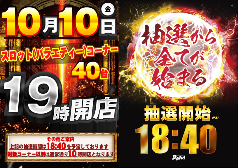 パチンコ320台 スロット120台の 抽選時間は9時40分