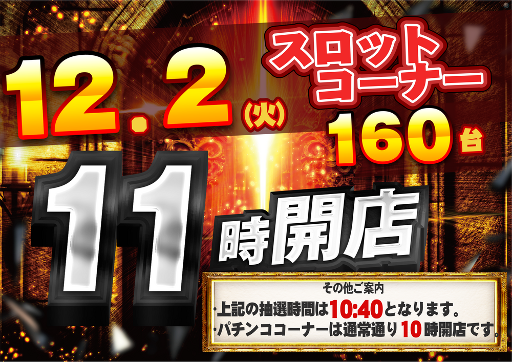 スロットコーナー 11時開店 & 2日連続店長ブログ更新