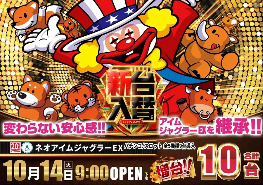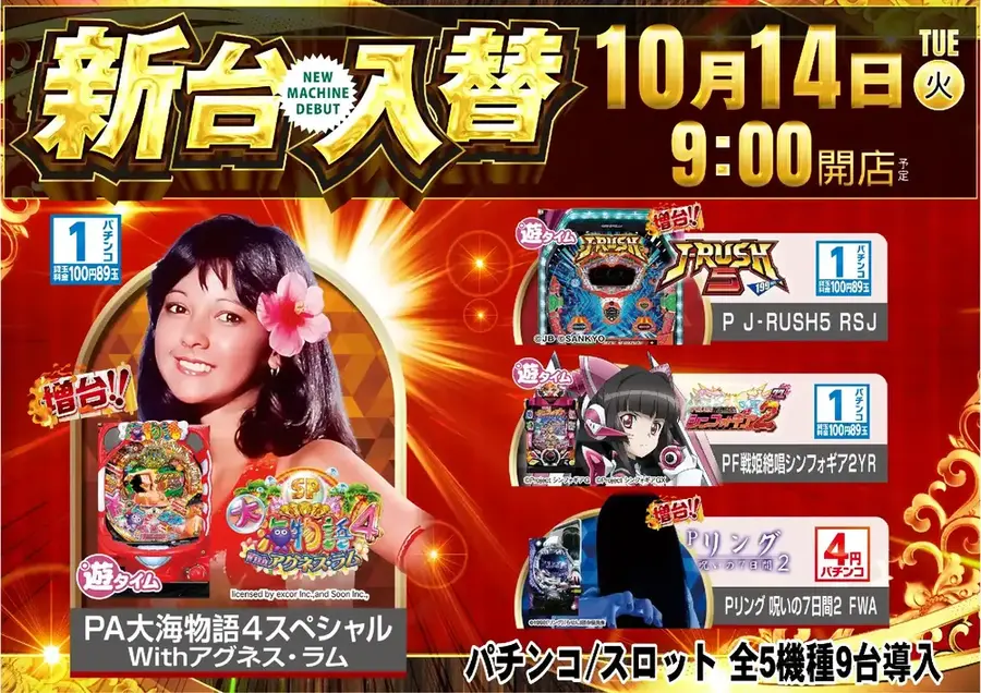 ダイナム二本松店より 10/14(火)新台入替のご案内 新 台 入 替予定 機種名をクリックすると、 機種情報が確認できます。 是非、お試しくださいませ。