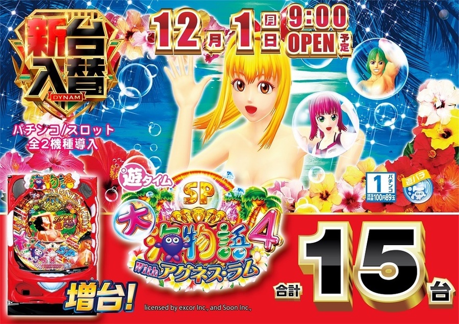 ダイナム二本松店より 12/1(月)新台入替のご案内 新 台 入 替予定 機種名をクリックすると、 機種情報が確認できます。 是非、お試しくださいませ。
