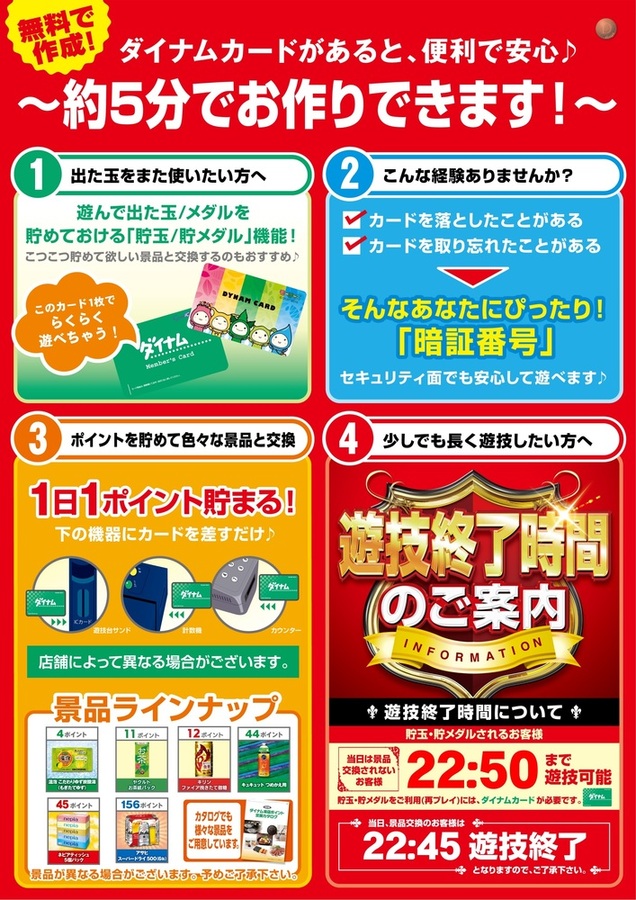 ダイナムカードをお持ち頂くことで、 ダイナムでのパチンコ・スロットがもっともっと楽しくなります