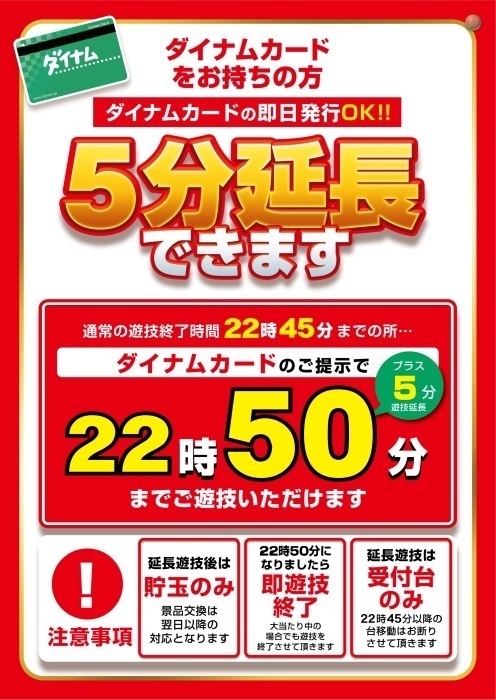 ※延長遊技以降は貯玉のみ・翌日以降の景品交換になりますのでご了承くださいませ