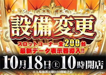 設備変更 スロットコーナー全200台 最新データ表示器導入!!