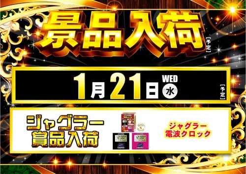 ■□■□■□■□■□■□■□ 1月21日(水)朝9時OPEN!! 『新景品入荷』♪(予定) ■□■□■□■□■□■□■□ 入荷景品はコチラ ジャグラー景品入荷!! ☆ジャグラー電波クロック☆ ■□■□■□■□■□■□■□ 従業員一同 お待ちしております♪