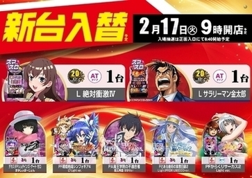 2月17日(火)は 新台入替