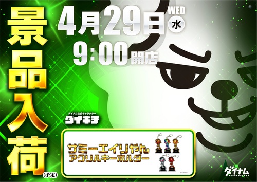 ■□■□■□■□■□■□■□ 4月29日(水)朝9時OPEN!! 『景品入荷』♪(予定) ■□■□■□■□■□■□■□ 入荷景品はコチラ 【サミーエイリやんアクリルキーホルダー】 ■□■□■□■□■□■□■□ 従業員一同 お待ちしております♪