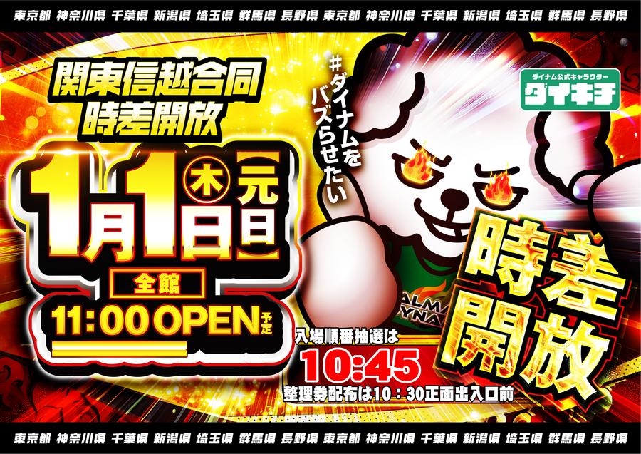 まずは本日2026年の幕開け、関東信越ダイナム全店