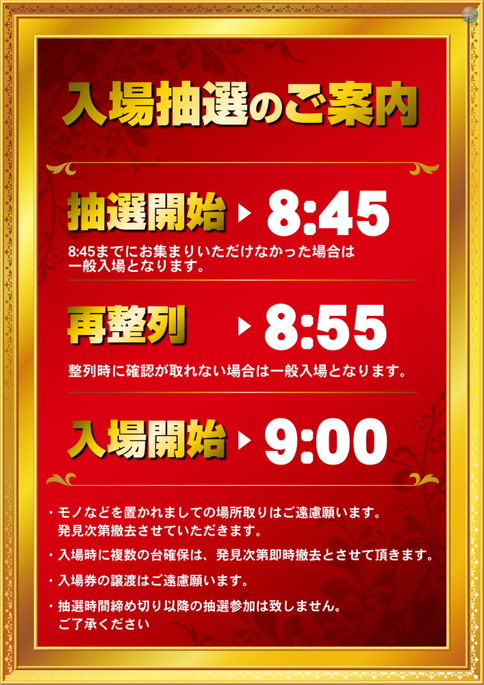 ・8:45の時点で並んで頂いた方が対象です。