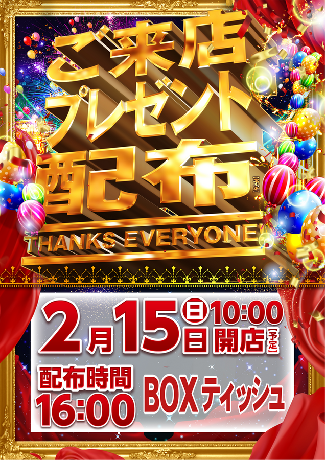 ご来店プレゼント 16時配布(予定)