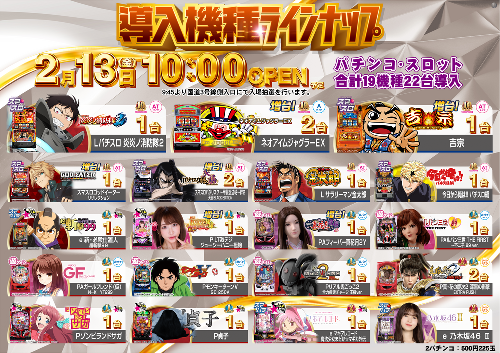 是非、ご家族・ご友人様お誘いあわせの上、朝の抽選からご来店お待ちしてます