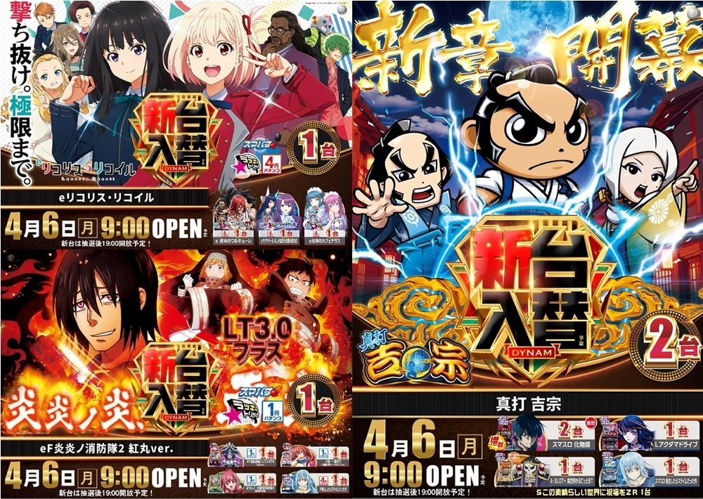 4円パチンコ eリコリス・リコイル 1台 e終末のワルキューレ 1台 eラグナドール 妖しき皇帝と終焉の夜叉姫 1台 e女神のカフェテラス 1台 eノーゲーム・ノーライフ 199Ver. 1台 P転生したらスライムだった件 1台 1円パチンコ eF炎炎ノ消防隊2 紅丸ver. 1台 PF戦姫絶唱シンフォギア4 199ver. 1台 P真・一騎当千~桃園の誓い~199LTver. 1台 ぱちんこ GI優駿倶楽部2 超限界突破 1台 20スロット (1000円46枚) 真打 吉宗 2台 A‐SLOT+ 異世界かるてっとBT 1台 Lアクダマドライブ 1台 スマスロ 化物語 1台増台 スマスロ 転生したらスライムだった件 1台 パチスロこの素晴らしい世界に祝福を! 1台 |