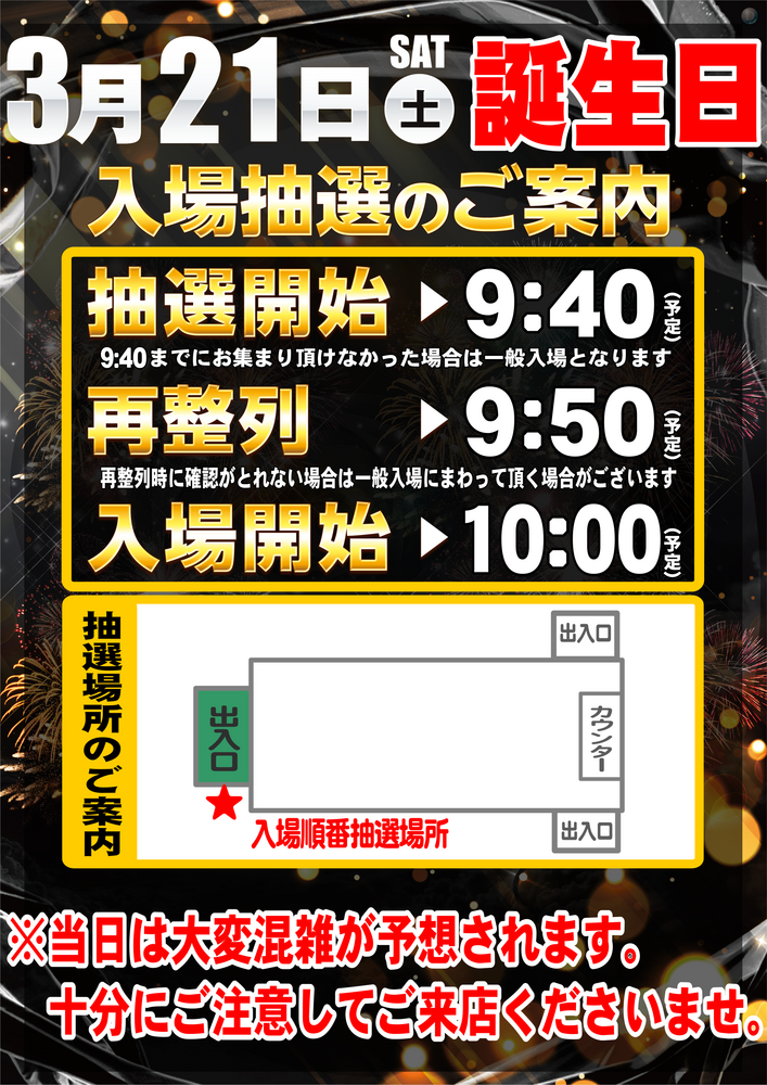 ダイナム国分店 店長の池田 ダイナムは3月21日、国分のお客様に長年のご愛顧を頂き、㊗23年目を迎えます。 本当にありがとうございます 誕生日の入場方法に関しては従来通り、店舗正面入口に「朝9時40分までに」並ばれた ※当日はたいへん混雑する事が予想されますのでお早めのご来店をお待ち致しております。