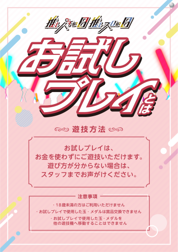 気軽にパチンコ・パチスロを無料で体験できる「お試しプレイ」を設置します。初めての方でも、まずは遊んで楽しさを体験してみてください。