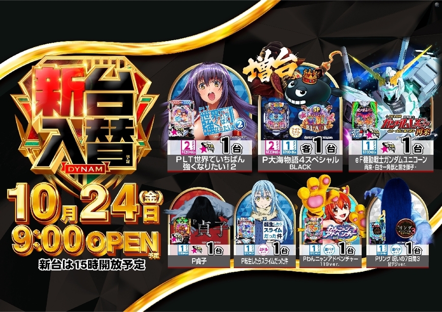 いつもダイナム宮城富谷店のHPを ご観覧頂きまして、ありがとうございます ◆◇◆◇◆◇◆◇◆◇◆ 新 台 入 替 (予定) ◆◇◆◇◆◇◆◇◆◇◆ のご案内です