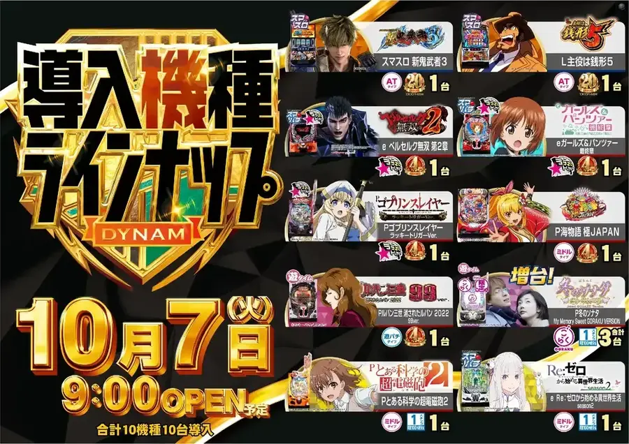 10月21日≪火曜日≫開店‼ パチンコ4機種・スロット2機種導入