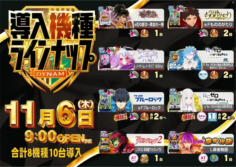 11月18日≪火曜日≫開店‼ スロット5機種・パチンコ3機種導入