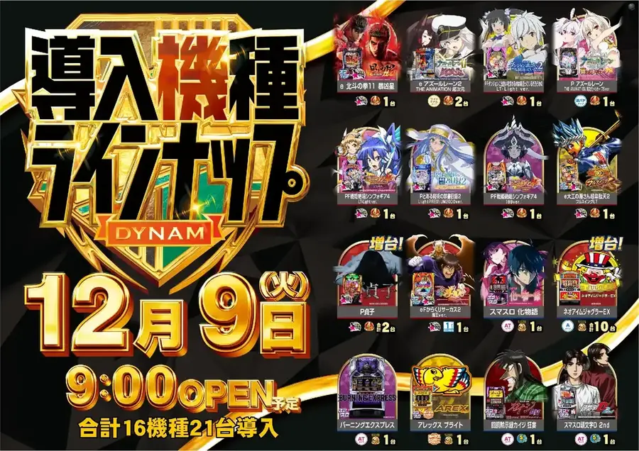 12月9日≪火曜日≫開店‼ パチンコ10機種導入・スロット6機種