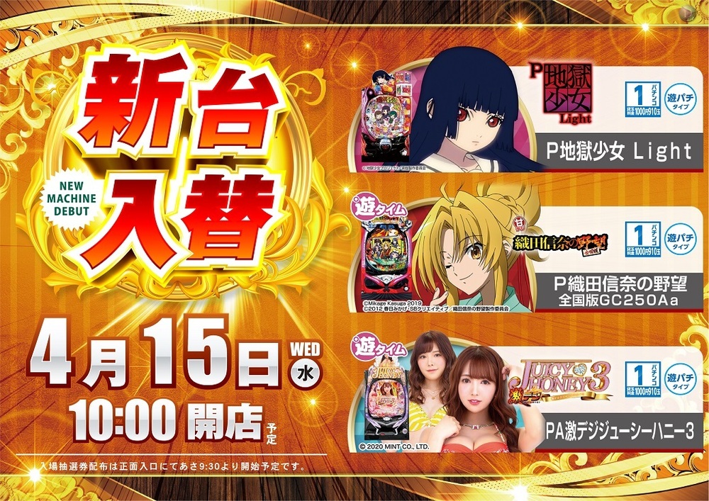 □■□■□■□■□■□■□■□■□■□■□■□■ 入場順番抽選参加券はAM9時30分より正面側入り口にて先着順で配布予定 従業員一同皆様のご来店をお待ちしております □■□■□■□■□■□■□■□■□■□■□■□■ |