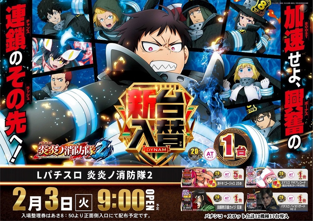 詳細は機種名をクリック! スロットコーナー Lパチスロ 炎炎ノ消防隊2 沖ドキ!ゴージャス 25Φ スマスロ マギアレコード 魔法少女まどか☆マギカ外伝 回胴黙示録カイジ 狂宴 パチスロ バイオハザード RE:2