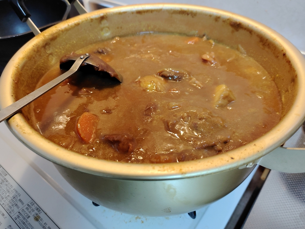 肉の量に合わせてカレーを作ったらカレーの海が完成しました![]()