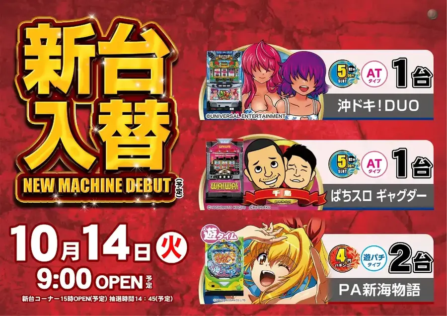 スロット2機種 パチンコ1機種 合計4台(予定)