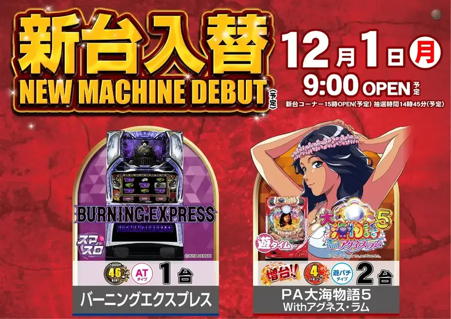 パチンコ・スロット2機種3台(予定)