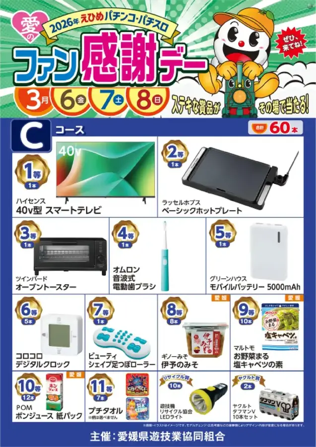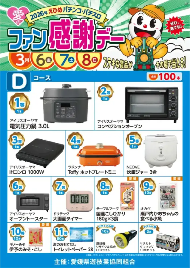 2026年えひめパチンコ・パチスロファン感謝デーに ダイナム愛媛大洲店は参加します