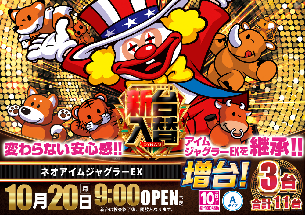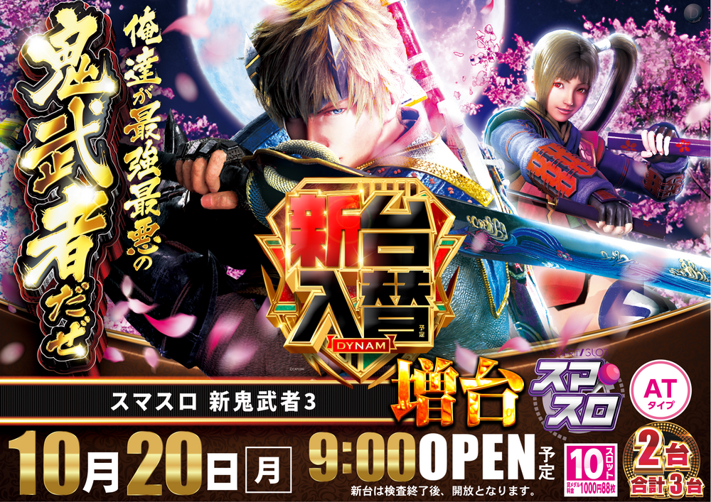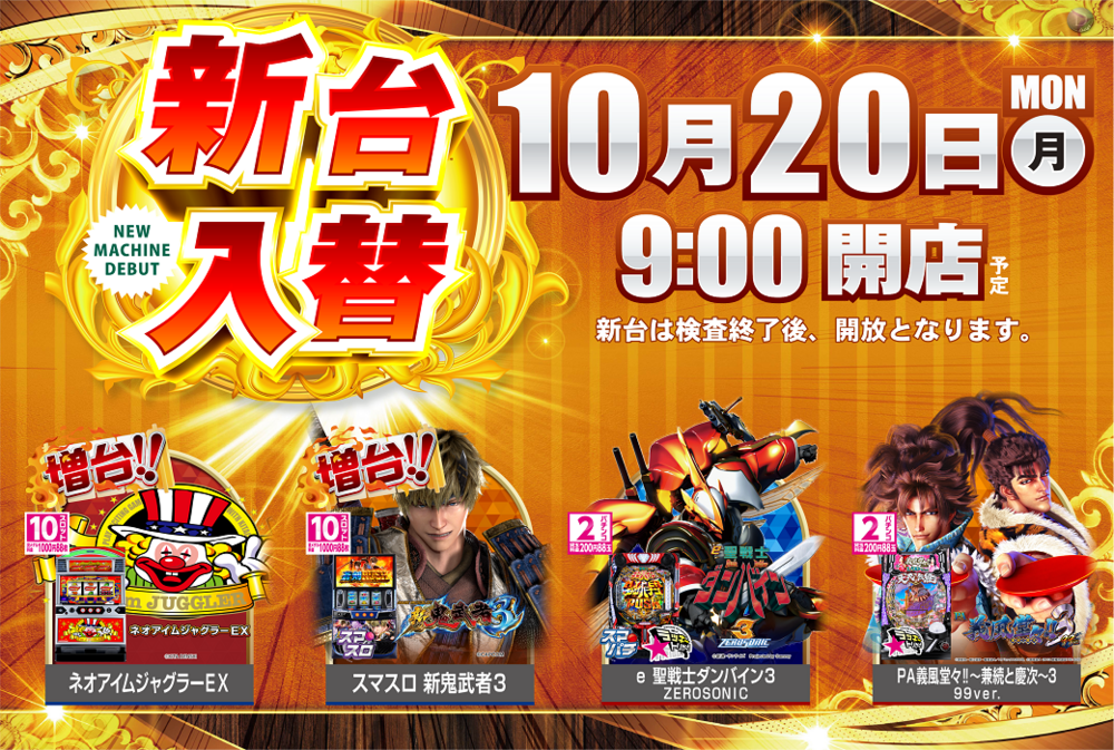 新台入替 9:00OPEN(予定) 朝の入場抽選は8:45を予定しています。