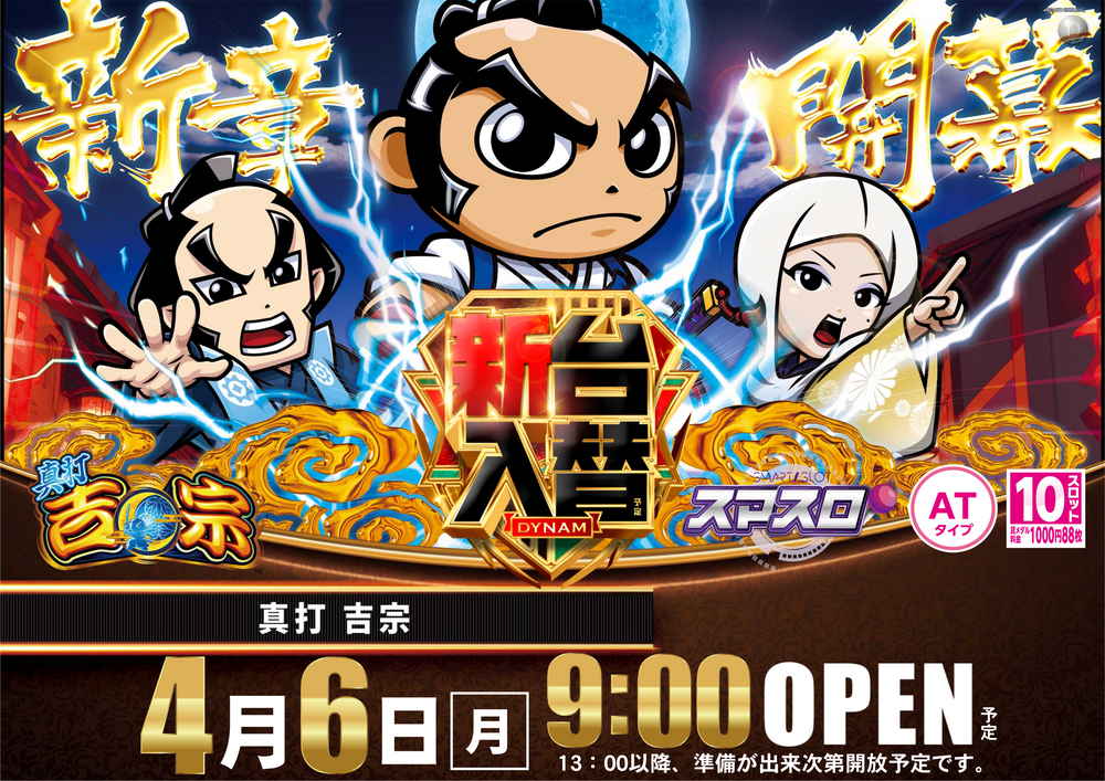 新台は13:00以降、 準備が整い次第開放予定です 皆様のご来店、従業員一同 心よりお待ちしております