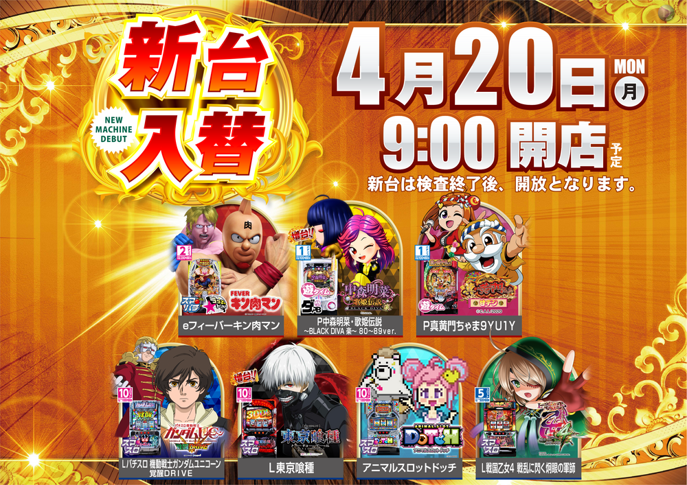 新台は13:00以降、
