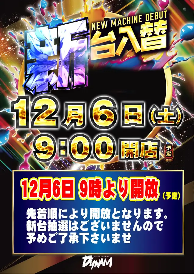 いつもダイナム三重名張店HPを ご覧いただきありがとうございます 12月6日(土) |