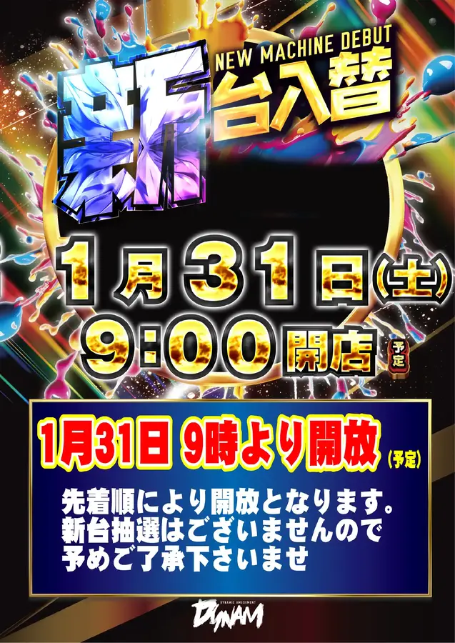 いつもダイナム三重名張店HPを ご覧いただきありがとうございます 1月31日(土) |