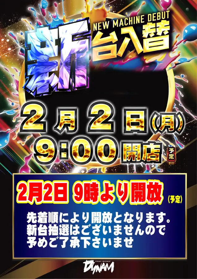 いつもダイナム三重名張店HPを ご覧いただきありがとうございます 2月2日(月) |