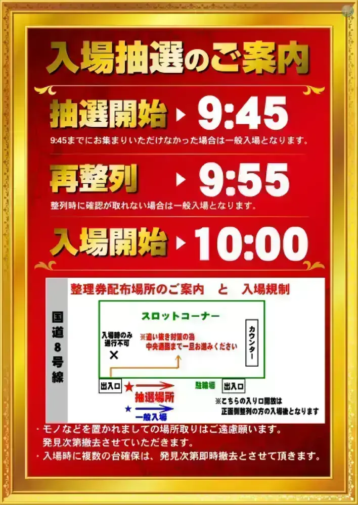 ■整列時間 ~9時45分までにお並び下さい 【国道側正面出入口】