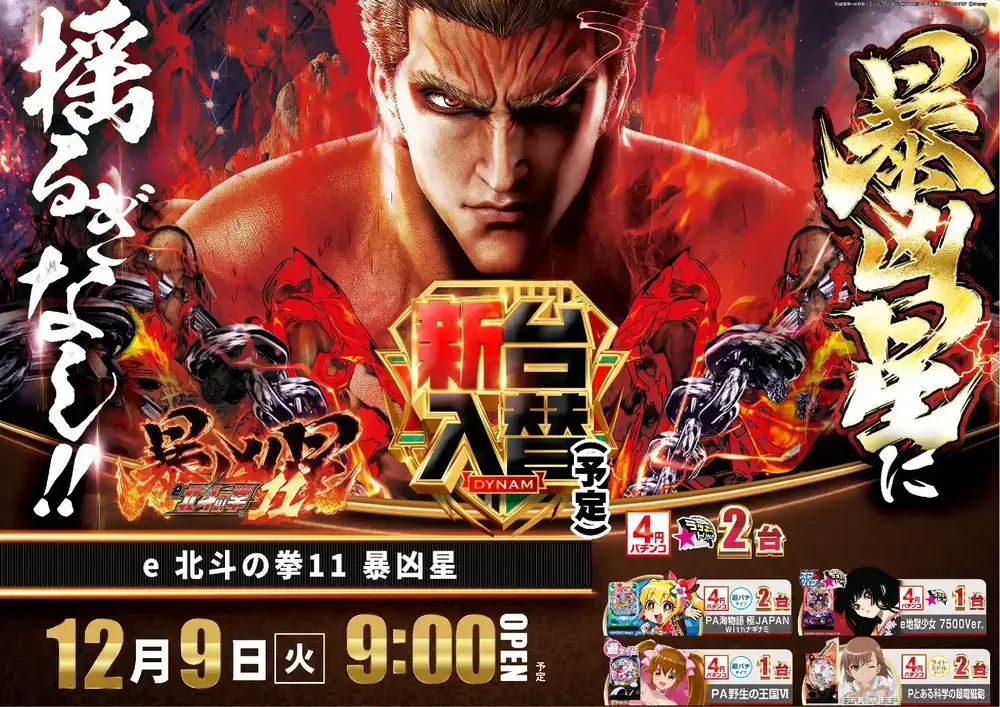 ダイナム山口小野田店のHPを ご覧頂きありがとうございます 12月9日(火) <9時開店> 新台入替予定
