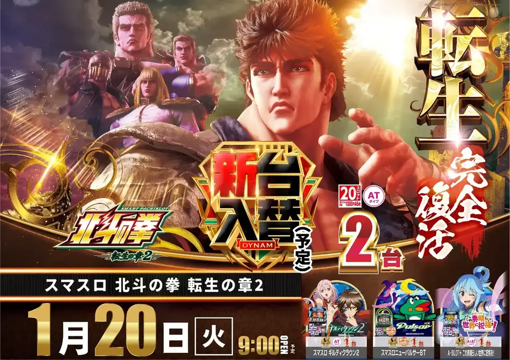 ダイナム山口小野田店のHPを ご覧頂きありがとうございます 1月20日(火) <9時開店> 新台入替予定