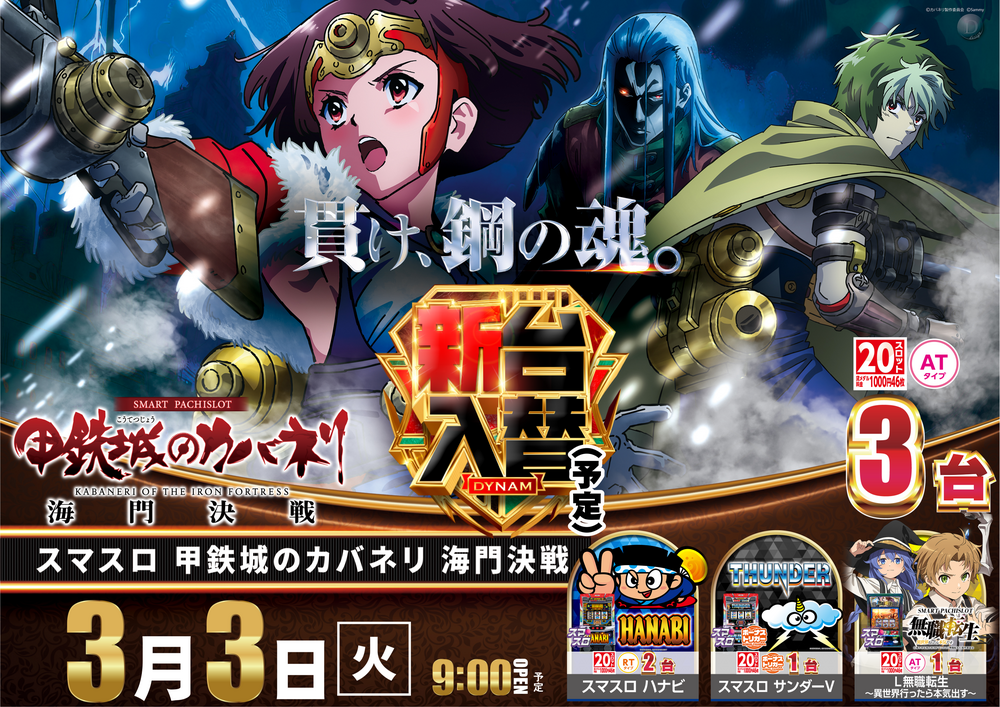 ☆1000円46枚スロット導入機種☆ スマスロ 甲鉄城のカバネリ 海門(うなと)決戦 スマスロ ハナビ スマスロ サンダーV L無職転生~異世界行ったら本気出す~