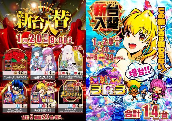 1月20日(火)新台入替(予定)