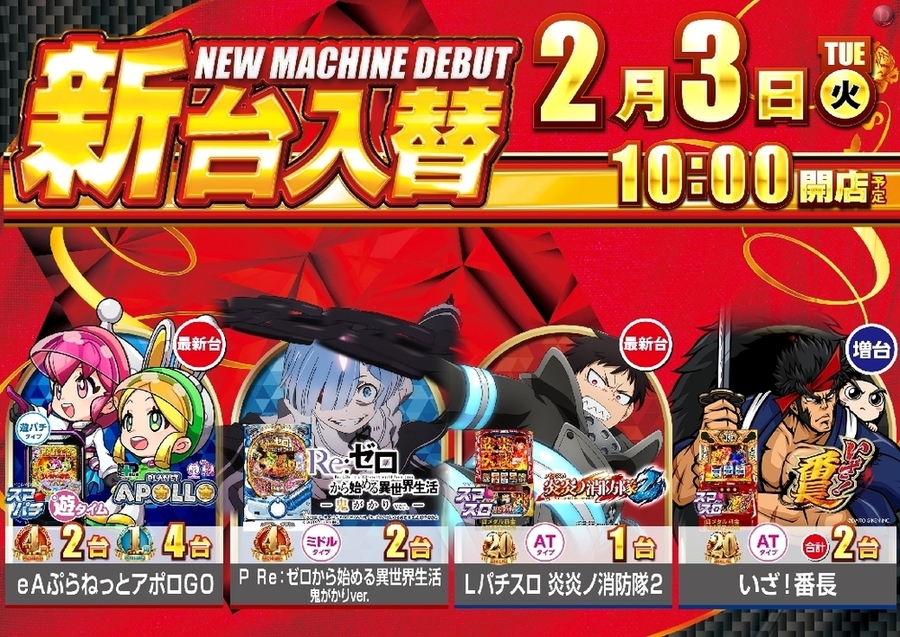 2月3日(火)新台入替