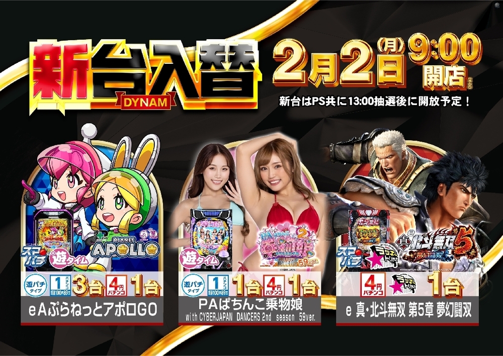 PAぱちんこ乗物娘 with CYBERJAPAN DANCERS 2nd season 59ver. 1台 ※こちらの機種は4円にも1台導入します。 4円パチンコ