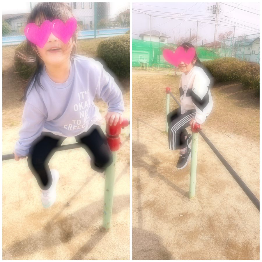と見せたかったのか鉄棒があるところに行って座って見せてくれました