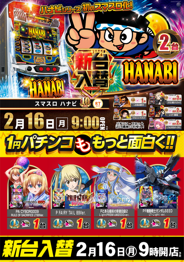 いつも店舗HPをご覧頂き、誠にありがとうございます。 2月16日(月) 新台入替♪