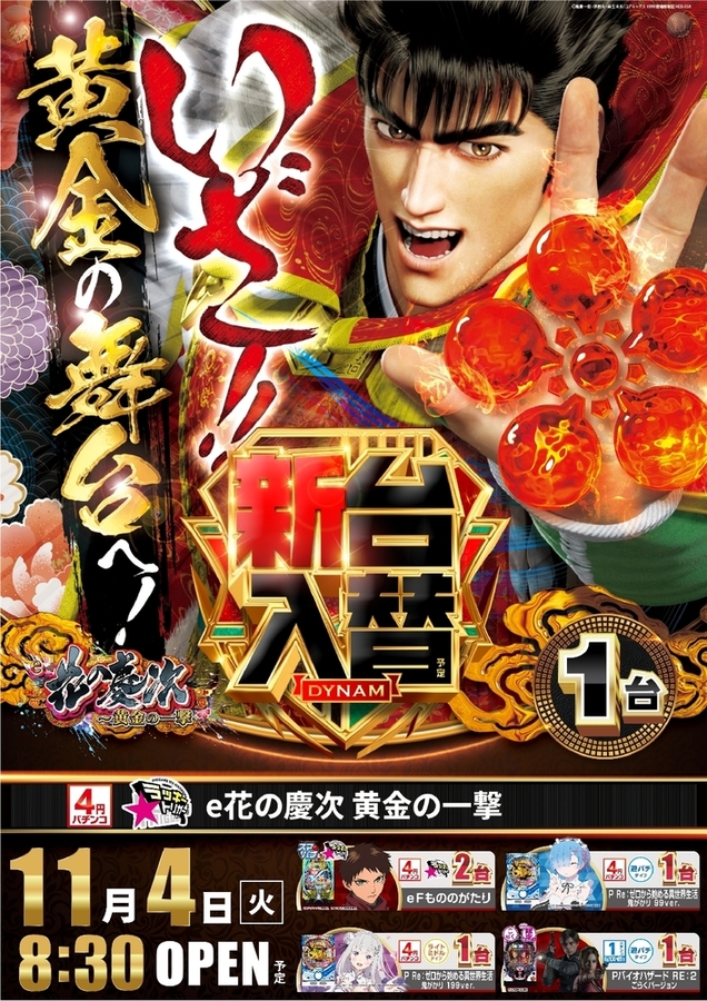 【4円パチンコ】 ☆e花の慶次~黄金の一撃(1台) ☆eFもののがたり(2台) ☆P Re:ゼロから始める異世界生活 鬼がかり 99ver.(1台) ☆P Re:ゼロから始める異世界生活 鬼がかり 199ver.(1台)