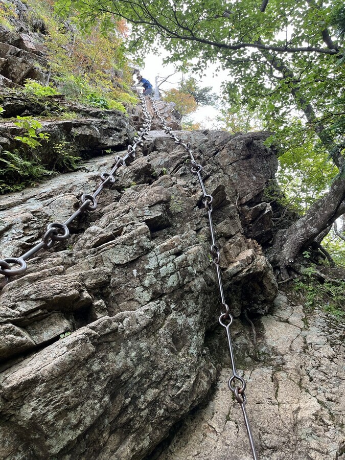 計4つがあり、ほぼ垂直の岩場を鎖を頼りに登ります。